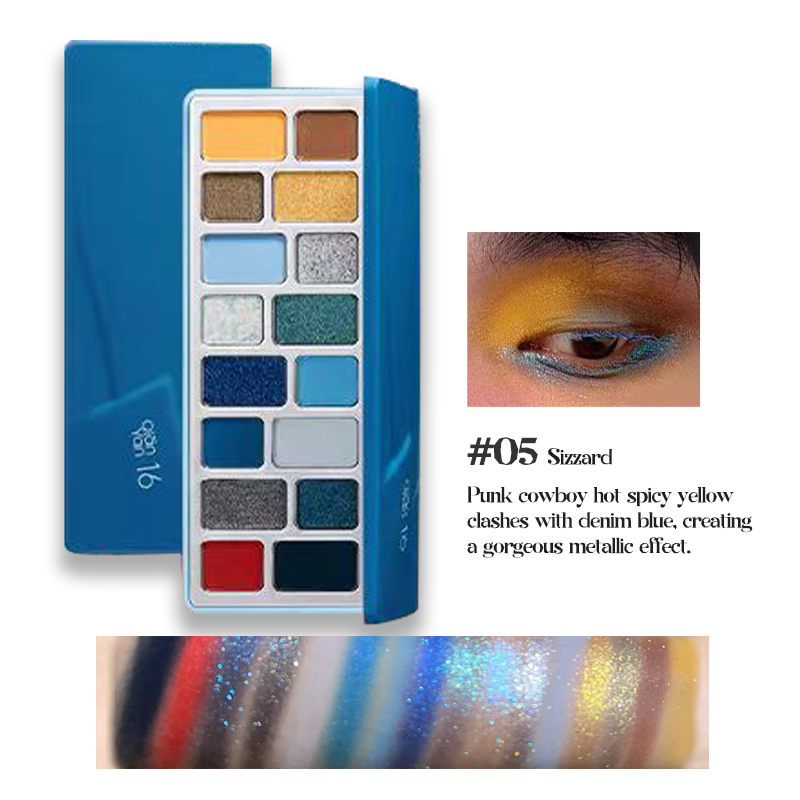 Product Contents: 16 eyeshadow shades in various finishes, including matte, shimmer, satin, and metallic.